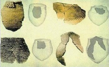 The Mi'kmaq were also expert basket weavers. They used wood splints pounded from ash logs, which they wove into sturdy but light-weight containers. These baskets, which could be very highly ornamented, were in high demand by Europeans in the 1800s. They also used birchbark and wove rushes to make containers of various types, and even experimented with pottery, which was not easily transported and soon fell out of use. Examples of recent basketry, and some recovered potsherds, are shown below.