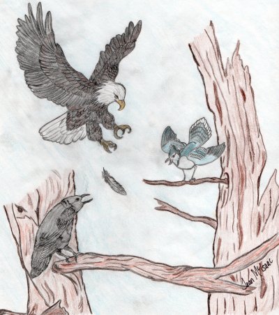screaming Crow or yelling Bluejay, she called upon Eagle,